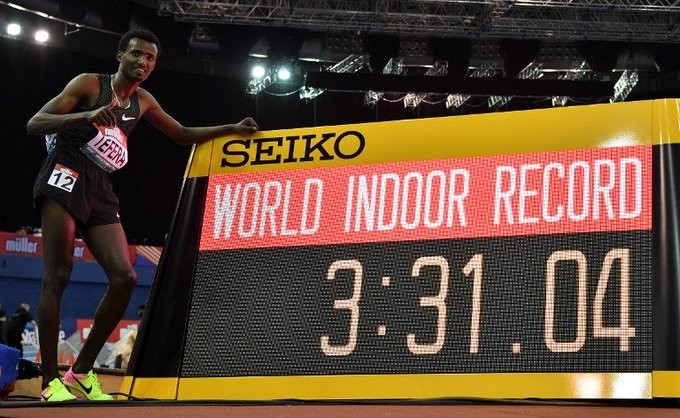 Tefera charged towards the line and stopped the clock at 3:31.04, taking 0.14 off the previous record set by Hicham El Guerrouj in 1997.