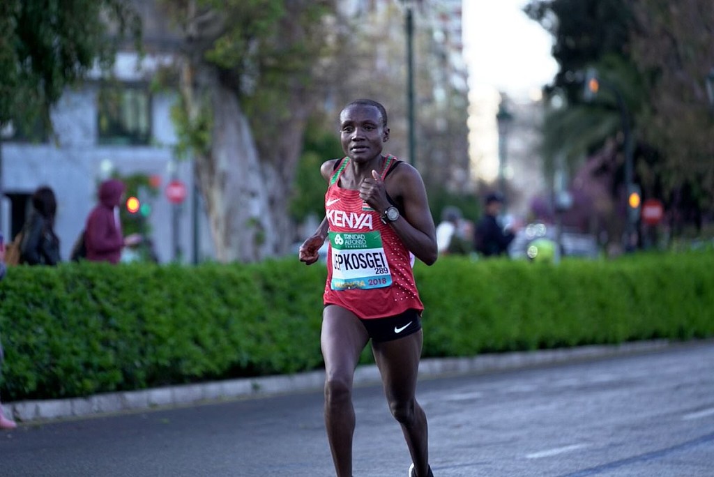 Coached by her husband Nicholas Koech, Jepkosgei took the half marathon world record in Prague in a time of 64:52, along with new world best for 10km in 30:05, 15km in 45:37 and 20km in 61:25.