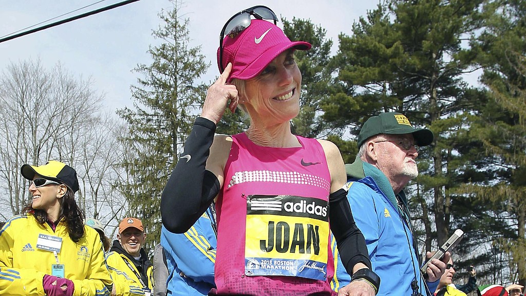 Benoit Samuelson says her goal next month is to run within 40 minutes of the time she clocked in her Boston debut 40 years ago. She last ran the Boston Marathon in 2015.