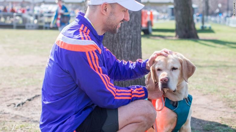 Thanks to volunteer human guides, he has since completed 20 marathons. Still, Panek missed the feeling of independence, which ultimately inspired him to start a formal training program for running guide dogs.