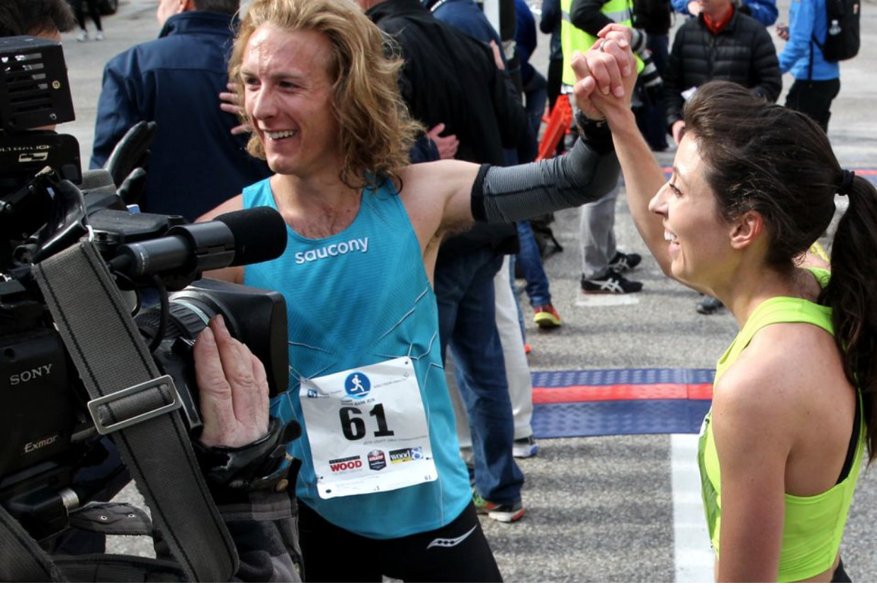 Both had reason to celebrate with record-setting performances Saturday at the Amway River Bank Run 25K in Grand Rapids, Michigan.