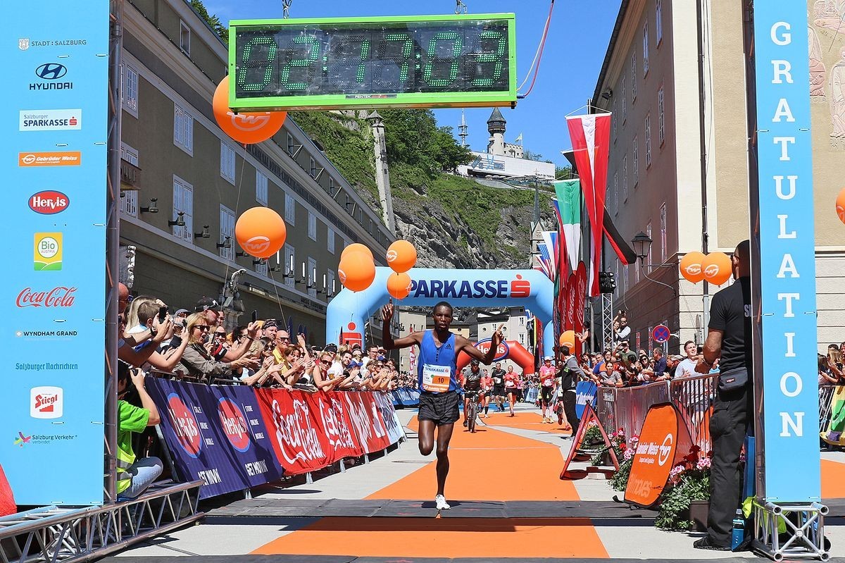 Victor Kipchirchir from Kenya won the Salzburg Marathon and narrowly missed the course record. The high temperatures slowed him down on the second lap.