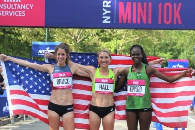 On a morning with near-perfect weather conditions in Central Park, Sara Hall won a thrilling battle for the USATF Women’s 10-K Championship, using a devastating kick to pull away from fellow Flagstaff, Arizona, resident Stephanie Bruce in the final 100 meters. The event was held as part of the 48th edition of the NYRR New York Mini 10-K, the longest-running women’s-only road race in the world.