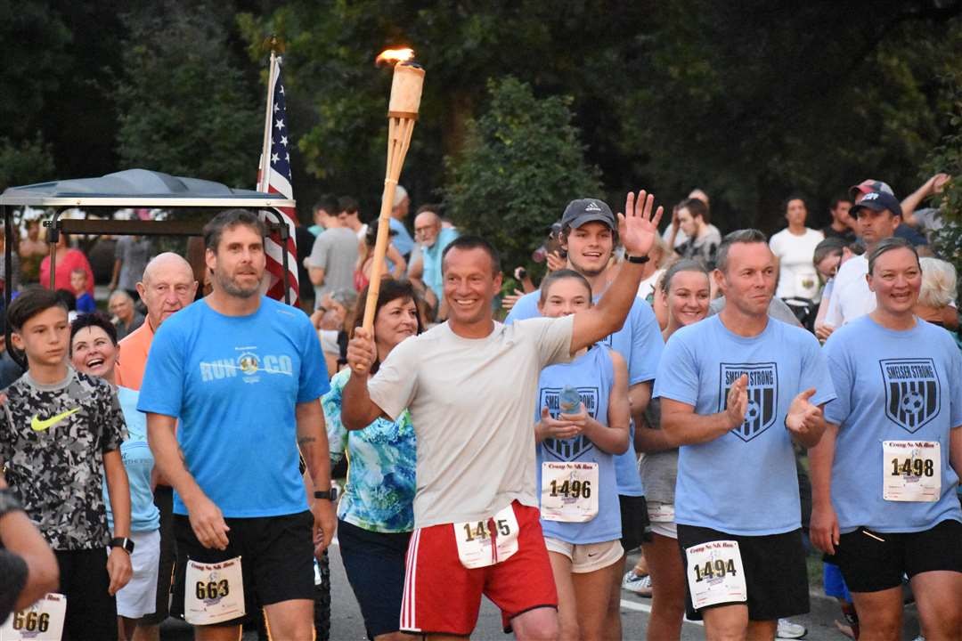 Crazy 8s torchbearer Michael Smelser finished in 38:22 alongside his brother Mark.