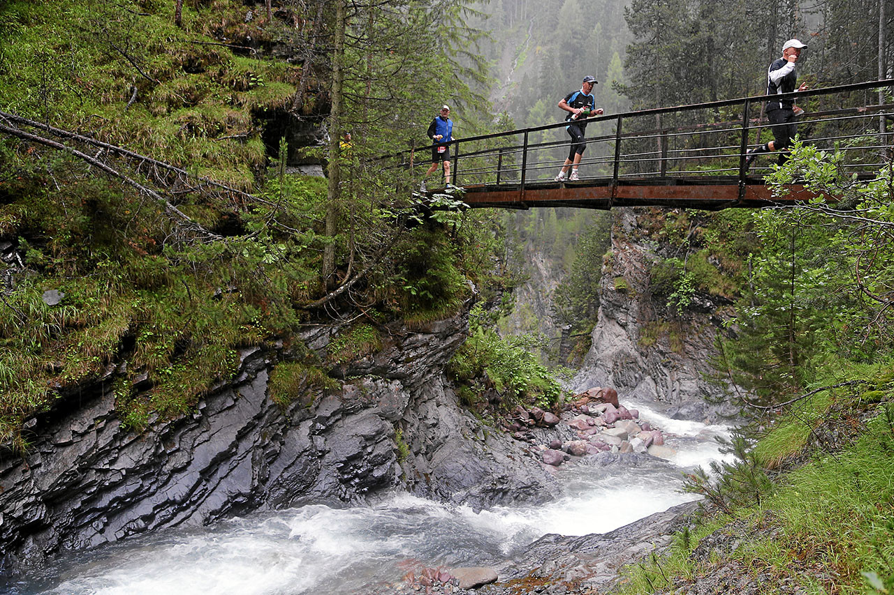 The total height difference was 3640 meters incline and 3877 meters descent. Thunderstorm rains and hailstorms made the Irontrail torture on Saturday.