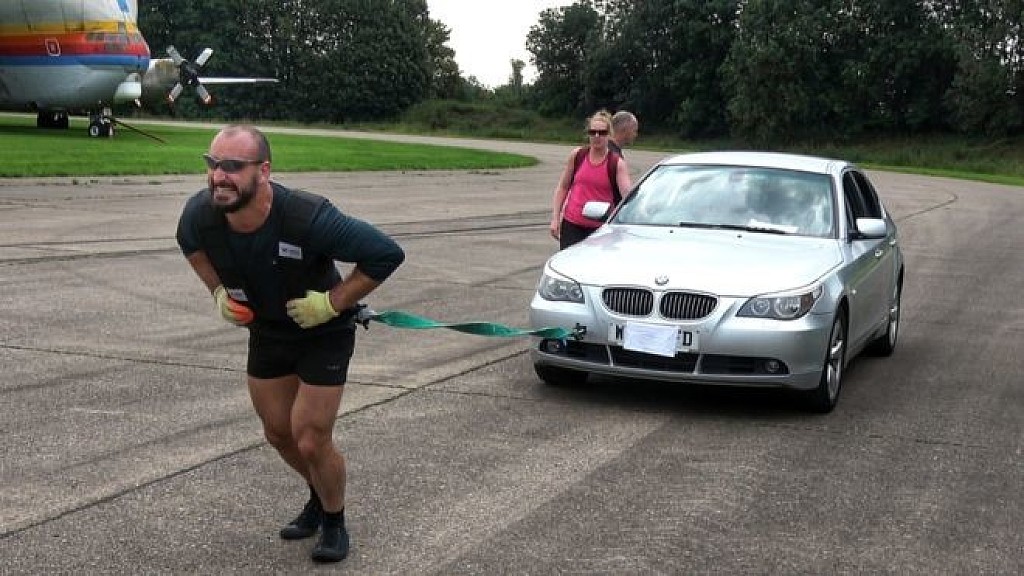 He said he was inspired to embark on the challenge after a friend had a double lung transplant. Max enlisted friends to steer the 1.7 ton BMW 5 series as he pulled it along the vehicle testing track in Lutterworth on August 3.
