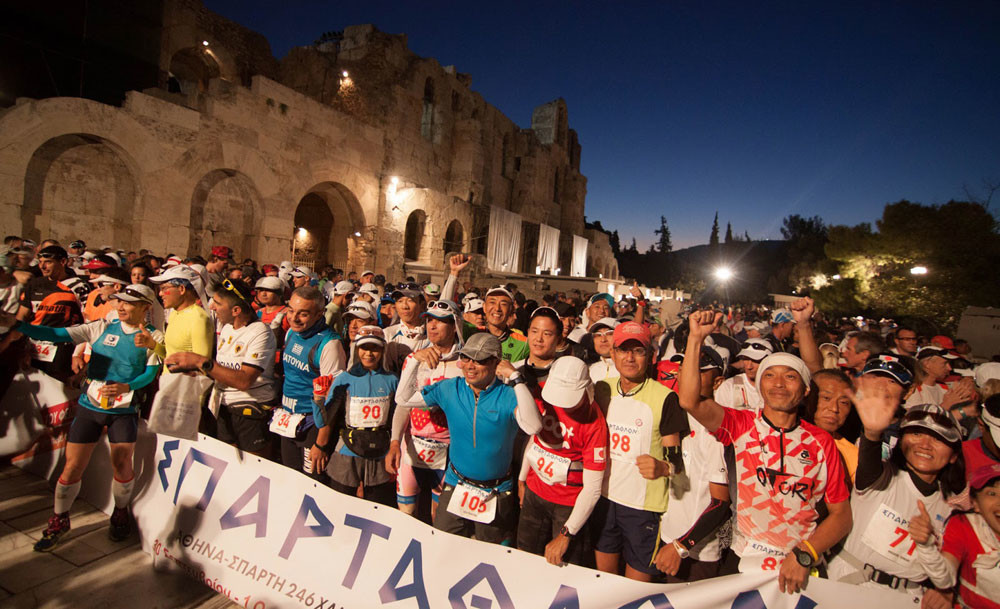 The race traces the footsteps of ancient Athenian Pheidippides who, in 490 BC, ran to Sparta to seek help in the Battle Of Marathon between the Greeks and the Persians.