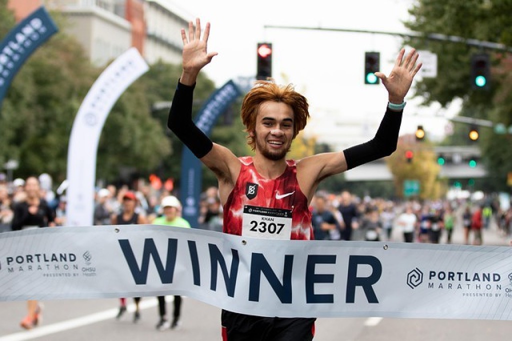 Khan said he’s been working toward the victory since moving to Portland two months ago, running more than a hundred miles each week with the Bowerman Track Club. He hopes to soon qualify for the Olympic trials, a feat that would require him to shave six minutes off his Sunday time.