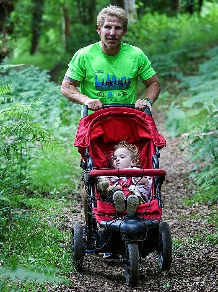 Dez O'Connor, 35, from Plymouth, Devon, (UK) likes to run in charity races and for the last three years has been taking his daughter Elsie, three, with him in a specially designed pushchair.
