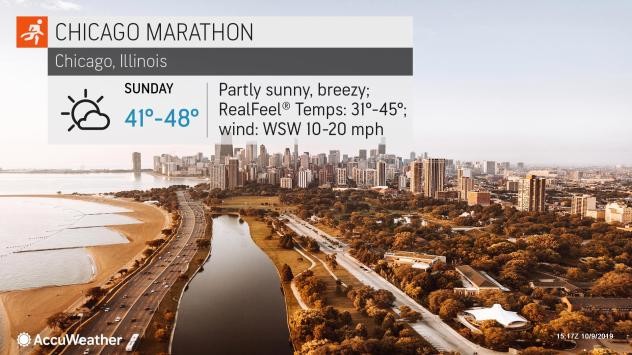 "Temperatures at the start of Sunday's Chicago Marathon will be in a range that most long-distance runners consider 'ideal', or in the middle to upper 40s," Babinski said.