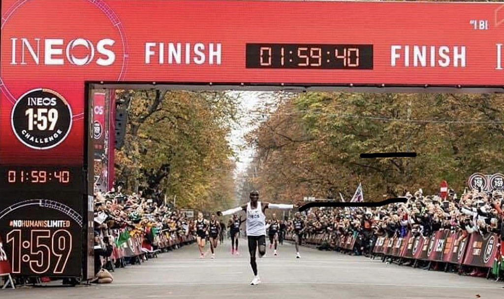 We have now seen a man run a marathon in under two hours. His wife Grace and their three children watched him race for the first time. They were all smiles as was Eliud.