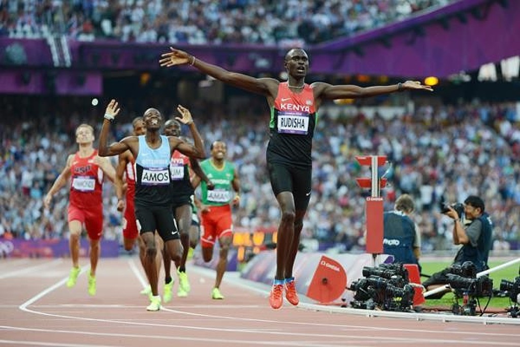 Urged on by the 80,000 fans who were sensing a stunning moment in the making, the long-striding Rudisha maintained his lead to the finish, crossing the line in 1:40.91 and punching the air as he did so, a lifetime’s ambition realised.