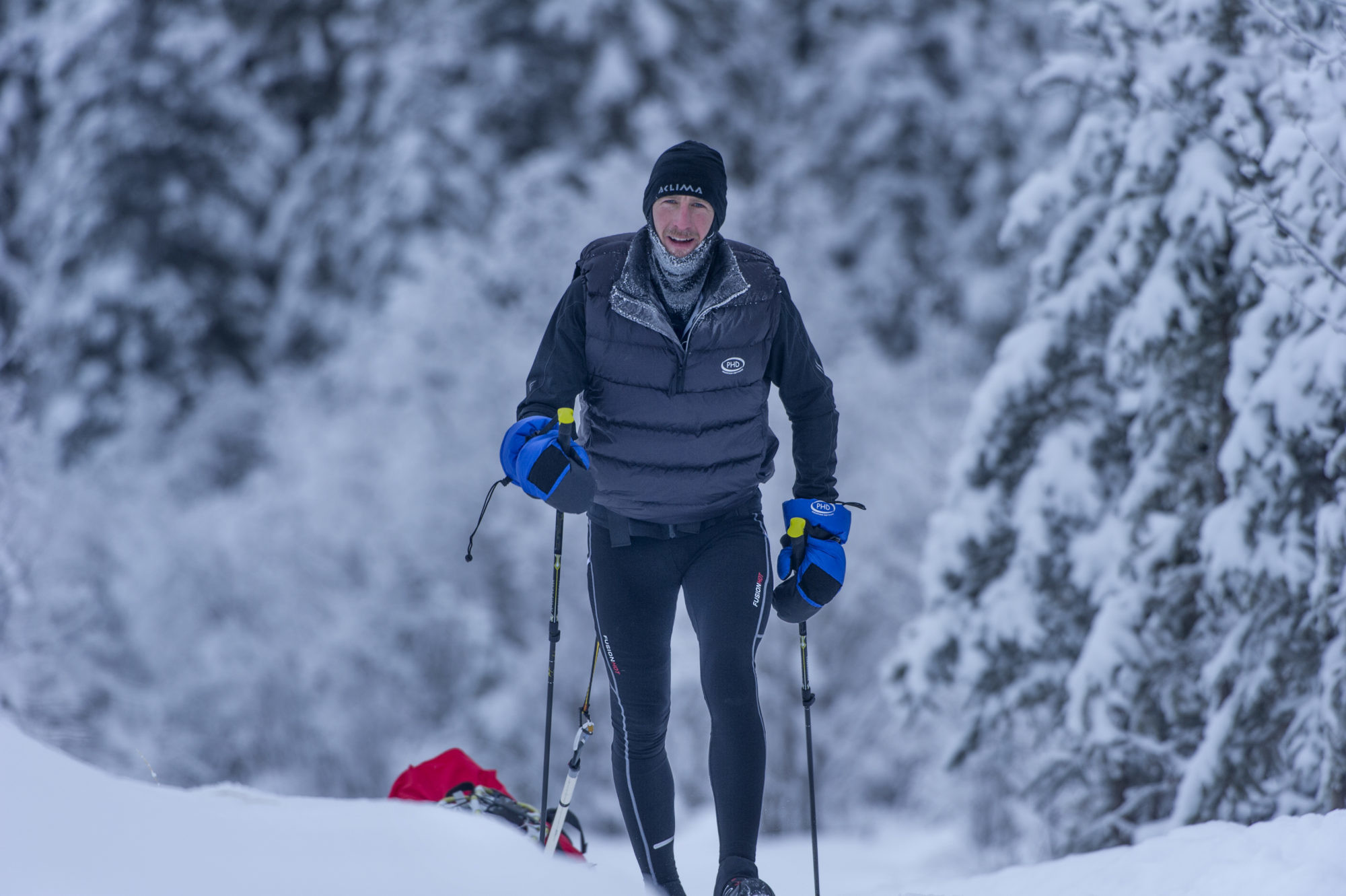 During the race, competitors are expected to be self-sufficient, towing food and shelter behind them in heavily laden sleds called ‘pulks’ and melting snow to provide water.