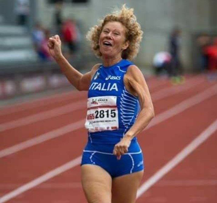 Anna Micheletti (second photo), 67, another age-group record-holder with numerous Italian and European titles from 100 meters to 400 meters, echoes Tiselli’s current training focus, adding that it’s not easy in the lockdown but it can be done.