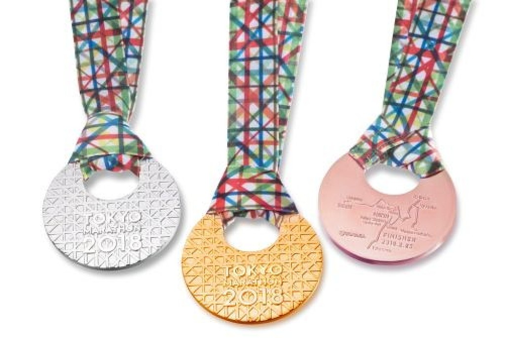 Tokyo Marathon medals (for the top three men and women) provided by Tanaka Holdings are made from pure gold, silver, and bronze, which are extremely rare even among medals presented at sports competitions. The medals for the 12th annual Tokyo Marathon Feb 25. 2018 overlapping design represent the runners who compete in the Marathon as well as the volunteers who support the event and the spectators who encourage the runners. The gold medal is 24k and is 200 grams. Current value of the gold alone is worth $8,476US.