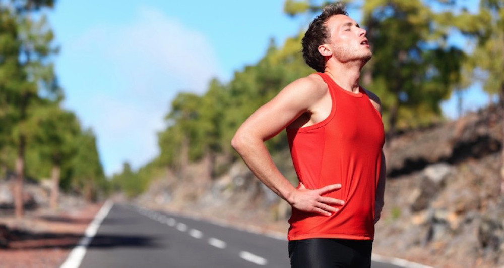 Think of the parietal peritoneum as a membrane corset that wraps around the center of your body and abdomen, says Gregg. As you fatigue and your body breaks down, your core muscles fatigue and your back muscles over-engage. The muscles in the back directly press on nerves that are felt in your abdomen and side (and sometimes even in your shoulder tip). The result is that irritating pain in your side.