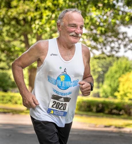 Leeds resident Bill Romito, 66, completed his virtual Boston Marathon on Tuesday, running 21 laps around Look Park in Northampton.