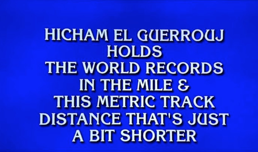 Most of the time the contestants on Jeopardy! leave us in awe of their seemingly endless knowledge of random facts, which is why there is no better feeling than knowing an answer that none of them gets right. In last night’s episode (with Ken Jennings as the new interim host in place of the late Alex Trebek), runners everywhere finally had their moment when all three contestants on the show demonstrated their extreme lack of knowledge of track and field (and well, distances in general). We know our sport is more niche than football or hockey, but this was just embarrassing.