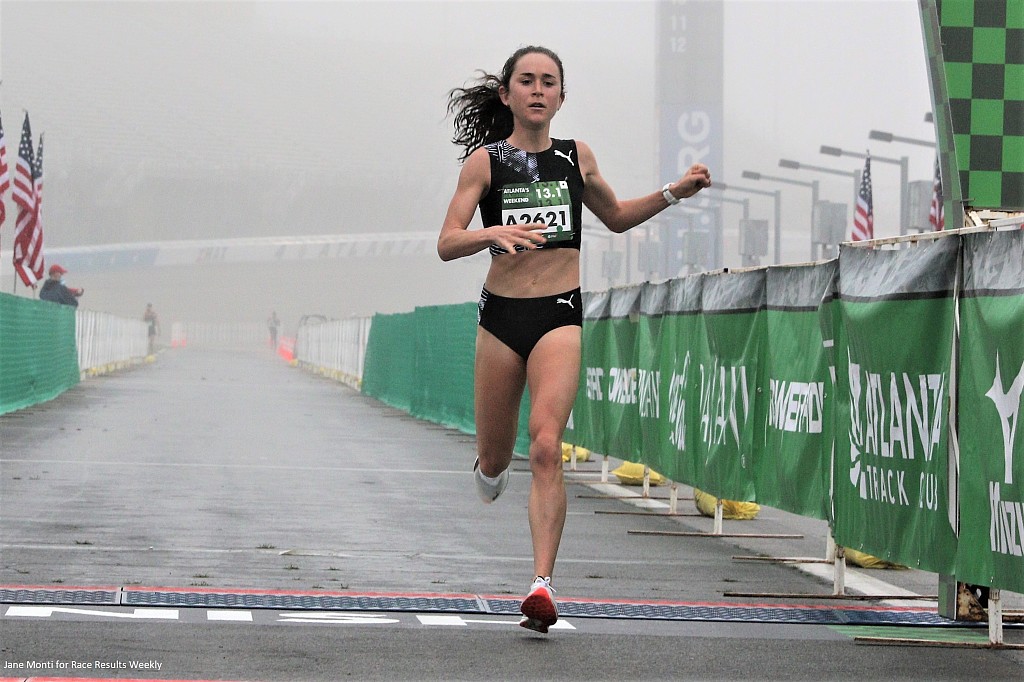 Boston-area resident Molly Seidel won the Atlanta Half Marathon on Sunday, crossing the finish line of the 13.1-mile race with a time of 1:08.29.