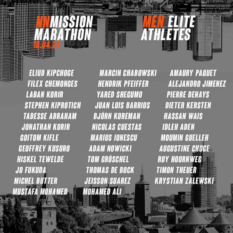 Set to run in the Netherlands on April 18, Eliud Kipchoge will headline the race of about 60 athletes.