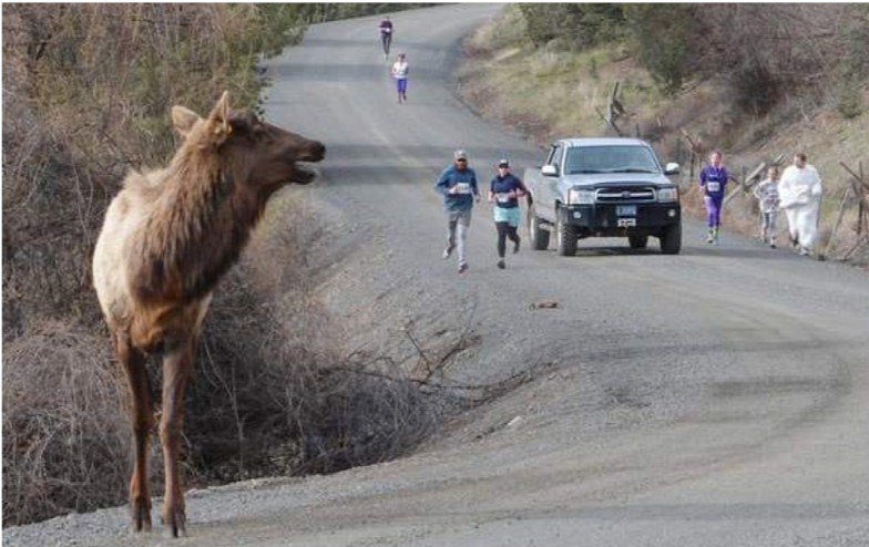 In the small town of Dayville, Oregon, locals are used to the occasional elk encounter. Which is why participants in the Bunny Hop 5K last Easter barely flinched when Buddy, one of the town’s notorious elk, jumped into the course. The animal stayed with a pack of runners for nearly the entire race, and even hung around for a few minutes at the postrace party.