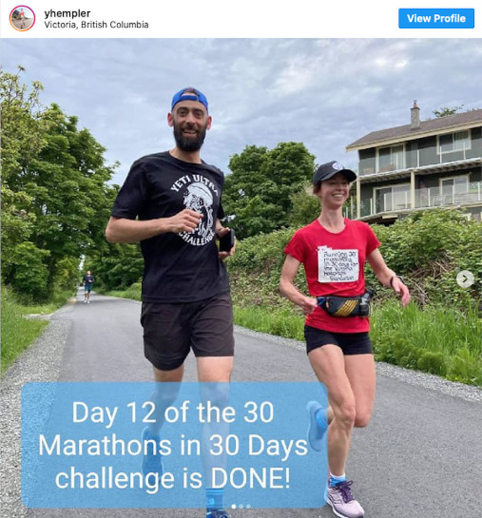 In 2020, Victoria’s Yana Hempler ran 12 marathons in 12 days to raise money for the Victoria Hospitals Foundation (VHF). Her fundraiser was a huge success, and she smashed her fundraising goal of $10,000, ultimately hitting $36,000. This year, Hempler decided to run another challenge, although she raised the bar to 30 marathons in 30 days with a goal of raising $500,000 for the VHF. She has flown through the challenge so far, and total donations for the event currently sit at more than $43,000.