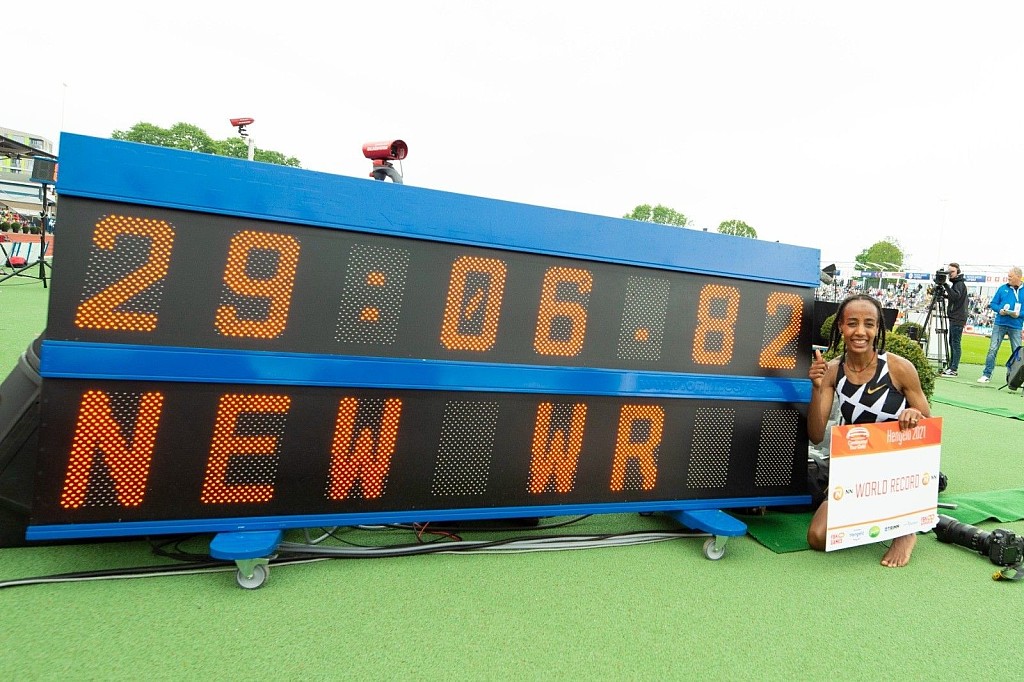 The lights she describes formed part of the Wavelight technology used at the Fanny Blankers-Koen Stadion during the World Athletics Continental Tour Gold meeting in the Dutch city, programmed to highlight the pace needed to improve the world 10,000m record of 29:17.45 which had been set by Ethiopia’s Almaz Ayana at the 2016 Olympic Games in Rio.