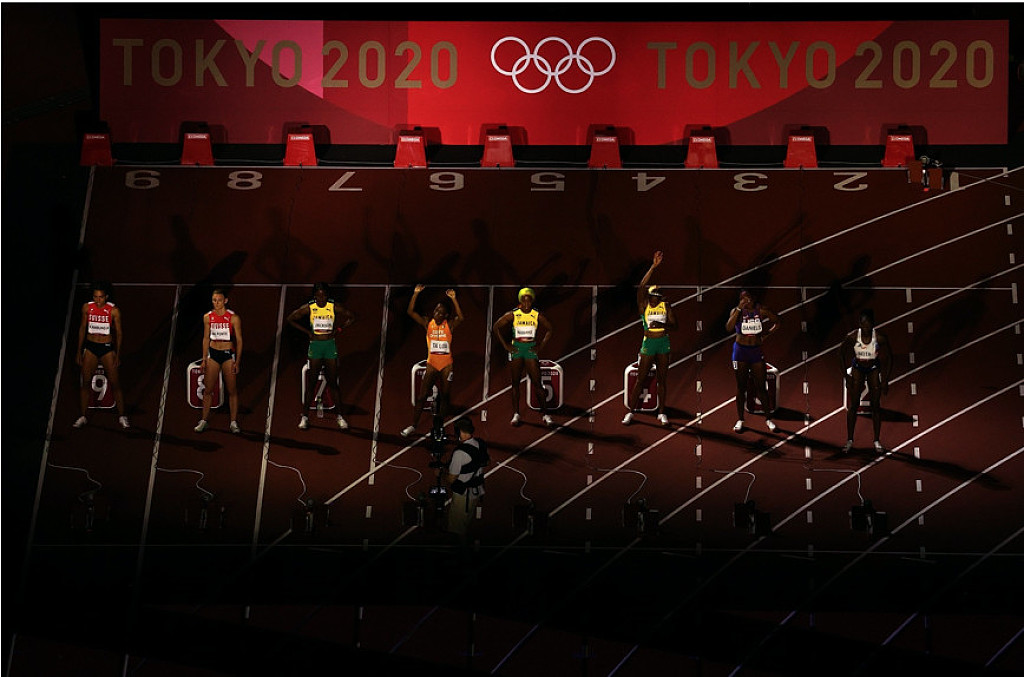 The women’s 100m final saw the introduction of a projection mapping light show to set the stage for one of the highlights of the Tokyo Olympic Games on Saturday night (31).