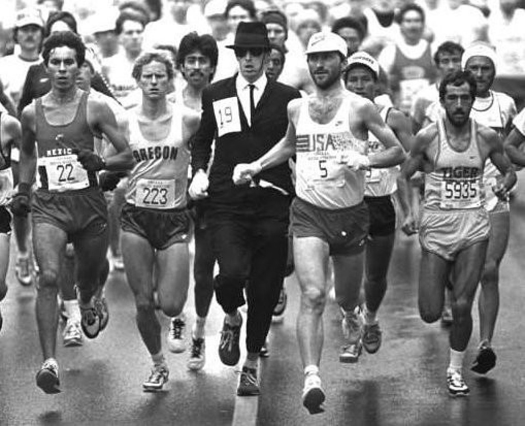 I'd answer "Well I don't know, it just seems funny to me." He was one of the first to wear a costume in a race. After running 25 flat in a five mile race as Elwood Blues his next stop was the New York City Marathon.