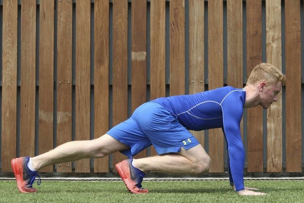 An excellent move, as it trains the legs to move explosively, at a high cadence, while also simultaneously engaging the core muscles. Start in a push-up position with one leg straight and the other bent, with your knee under your torso. Maintaining a steady upper body, focus on explosively alternating legs for 20 seconds, with 40 seconds recovery. Repeat five or six times.