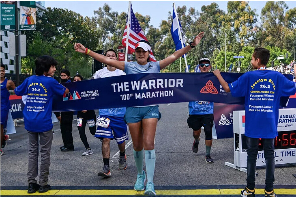 Jocelyn Rivas has been running marathons since she was 17. On Sunday, the 24-year-old ran her 100th at the Los Angeles Marathon. This makes her the youngest runner to complete 100 marathons, pending verification by Guinness World Records. It also makes her the youngest Latina to accomplish this feat—something she’s proud of, as a Dreamer who came to the U.S. from El Salvador when she was six.