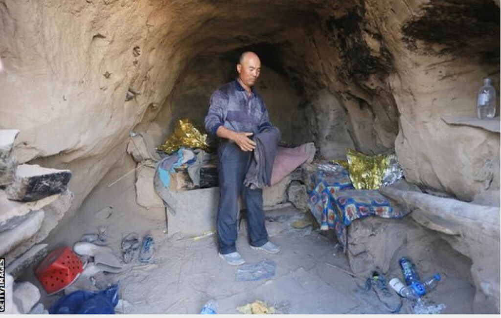Zhang, meanwhile, had been rescued by the shepherd, who'd taken off his wet clothes and wrapped him in a quilt. Inside the cave, he wasn't alone.