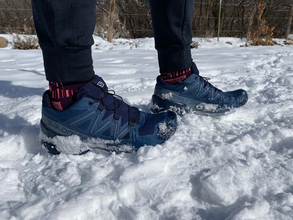 Some road running shoes do a decent job of securing feet in place. Others skew more toward a sock-like fit, and can get away with the lack of support over the top of your foot because they're meant to run on smooth, flat roads. Trail running shoes, on the other hand, are built with heartier overlays, or, reinforcements of material that keep feet in place on everything from scree fields to off-camber trails cutting across the sides of a mountain. That kind of secure hold is what you want on snowy surfaces, where you never know just how much the snow is going to give-and subsequently, your foot is going to move-with every step.