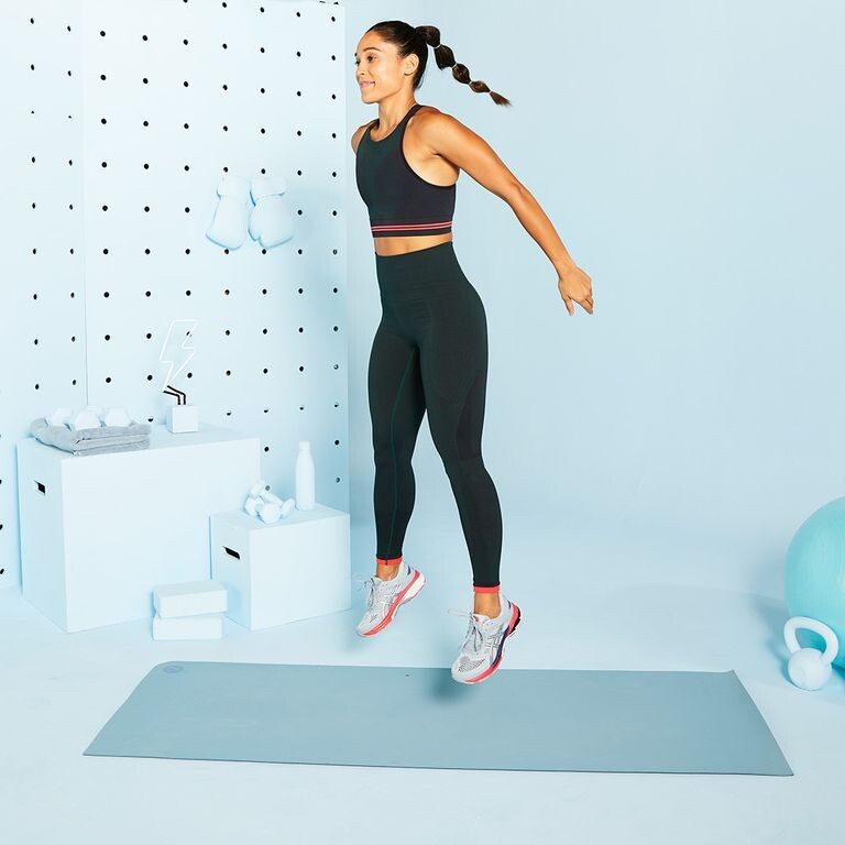 This session alternates between sprinting and explosive, plyometric-style exercises for a varied and intense workout. The ideal location for a workout like this is at your local track, but you can easily convert the running distances to times to do this on the road, or you could do it indoors on a treadmill as well. The strength portion does not require any equipment, making it easy to take to a variety of locations, and is all done Tabata-style, which means eight rounds of 20 seconds of work and 10 seconds of rest.