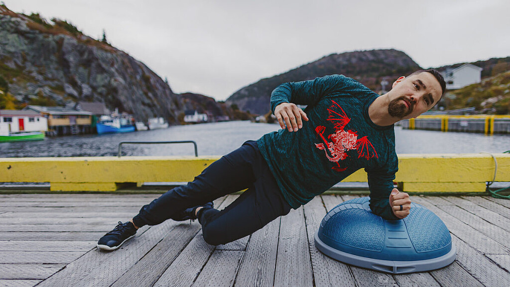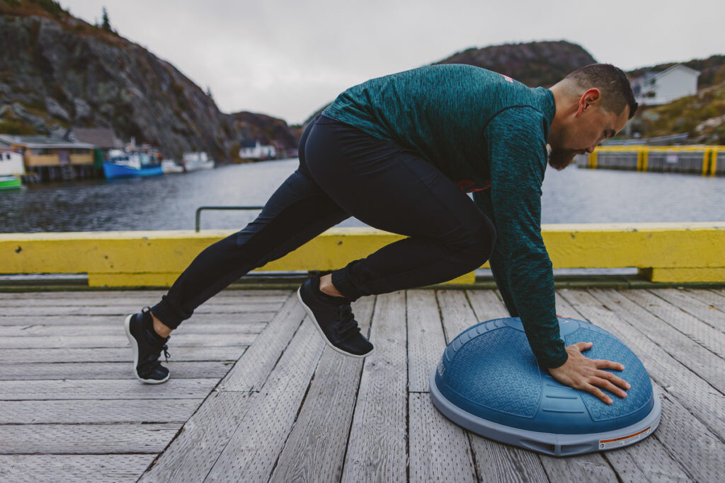 If you’ve ever been to a physiotherapy clinic, chances are you are familiar with the half-ball platform device commonly referred to as a Bosu, which is used to challenge your balance. The ball can provide good cushioning for core exercises and is useful as a prop for certain mobility exercises, such as split stance squats and single-leg balance exercises.