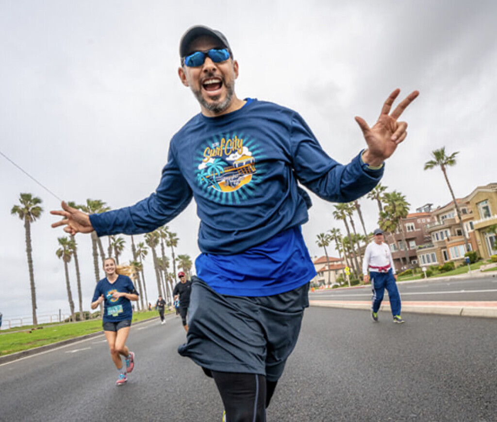 The field also included Heather LeFriec, a physical education teacher from Spokane, Washington, who ran in the Surf City USA Marathon to fulfill her goal of completing 50 marathons by her 50th birthday in March.