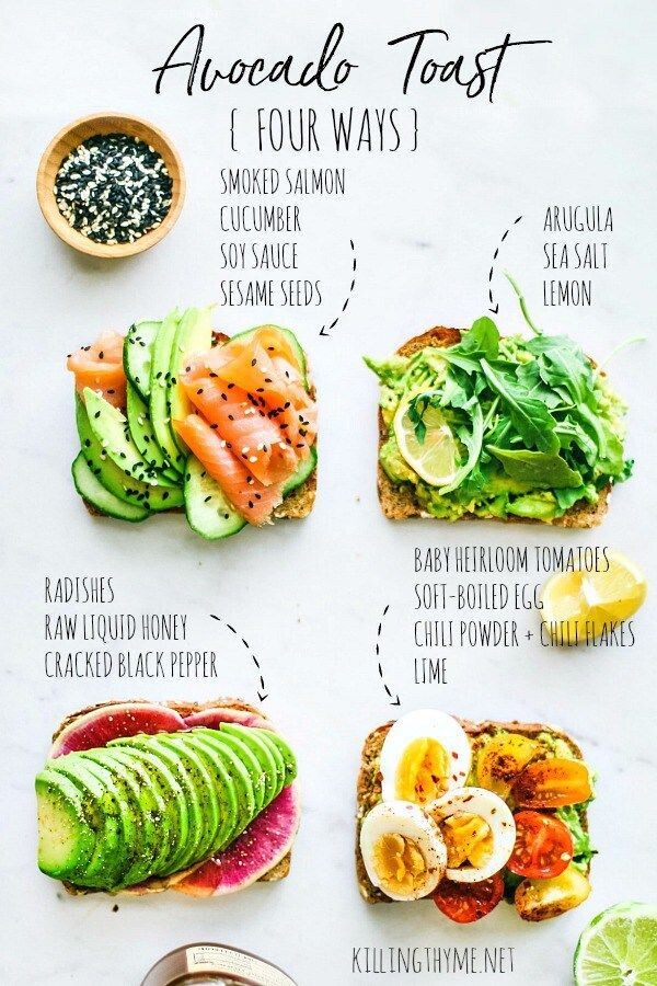 Make avocado toast with eggs and tomatoes for a balance of carbs, protein, and fat