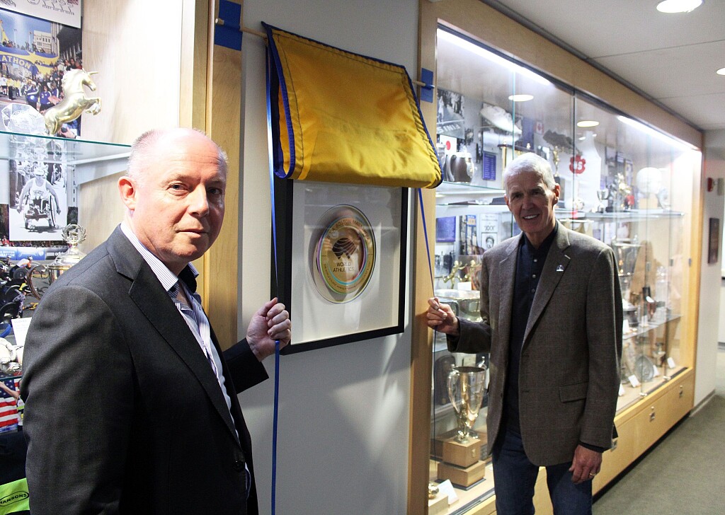 The plaque was unveiled by Thomas S. Grilk, B.A.A. President & Chief Executive Officer, and World Athletics Heritage Director Chris Turner, in the company of Jack Fleming, B.A.A. Chief Operating Officer, and fellow colleagues from the B.A.A. organization.