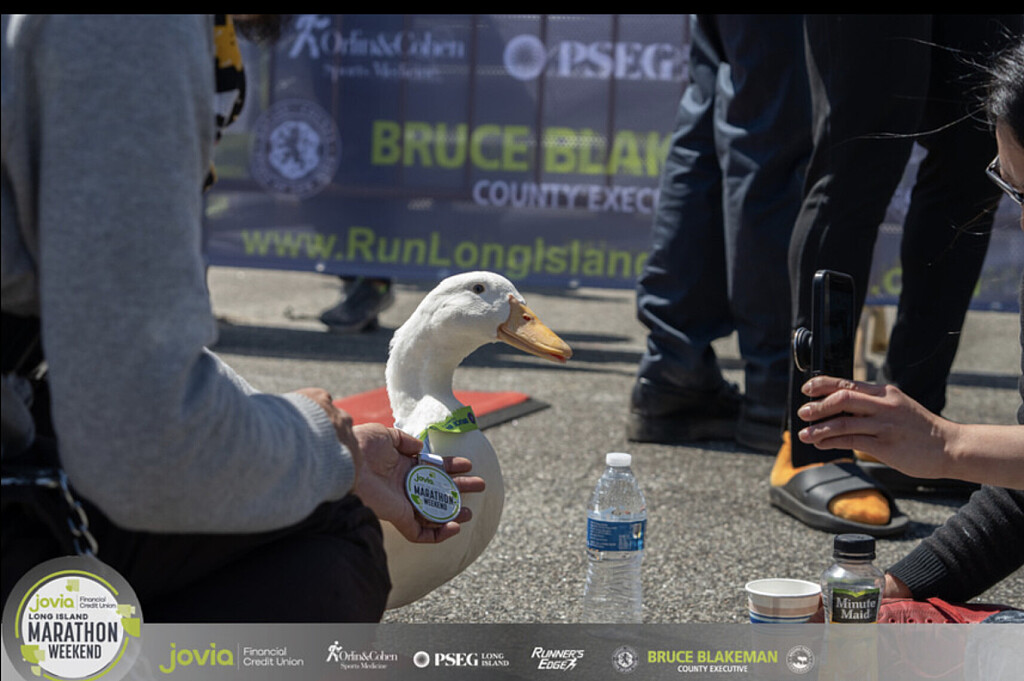 In case you forgot about the famous duck, Wrinkle, who made an appearance on the course at the 2021 New York Marathon, he made another appearance at the Long Island Marathon in New York on May 7, in the kids 1K marathon, where Wrinkle clocked a world duck record of 18 minutes and eight seconds.