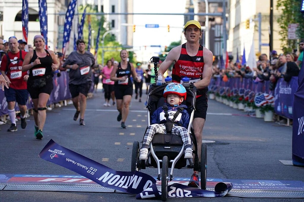 Canadian marathoner and dad from Waterdown, Ont., Lucas McAneney not only won Sunday’s Buffalo Marathon in Buffalo, N.Y. but did it with his two-year-old son Sutton along for the ride. McAneney pushed a stroller for the entire race in an attempt to break Calum Neff’s Guinness world record for the fastest marathon while pushing a stroller.