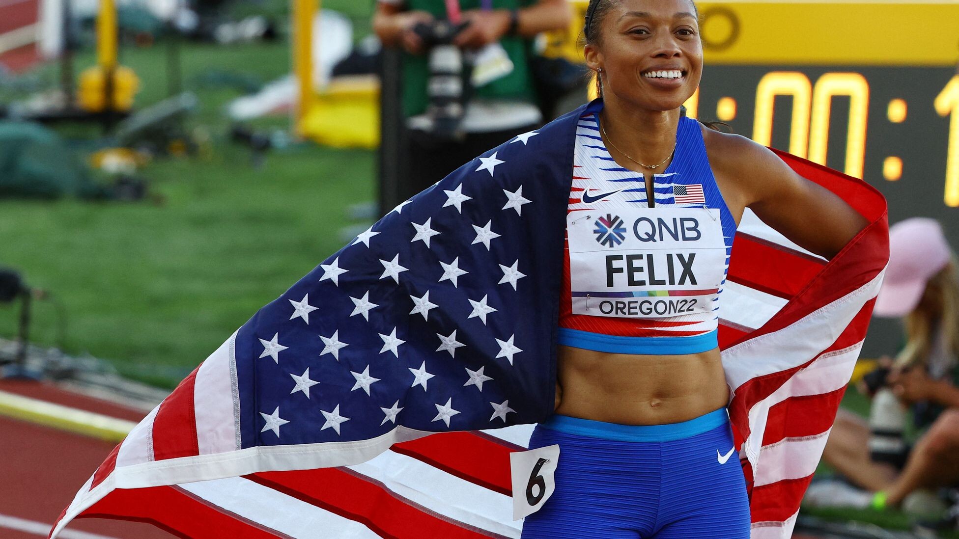 Allyson Felix made it very clear that this was her final year of competition. She’s accomplished basically everything there is to accomplish and now she’s on her farewell tour. After the U.S. won a bronze medal in the mixed-gender 4×400-meter relay tonight at the World Championships, Felix was asked about her favorite moment over her career—a career that’s spanned over two decades, five Olympic Games, and countless other accomplishments. She said, “I’ll go with tonight.” She’s cherishing the end. “To be able to come here in front of a home crowd is something I’ve always wanted.”