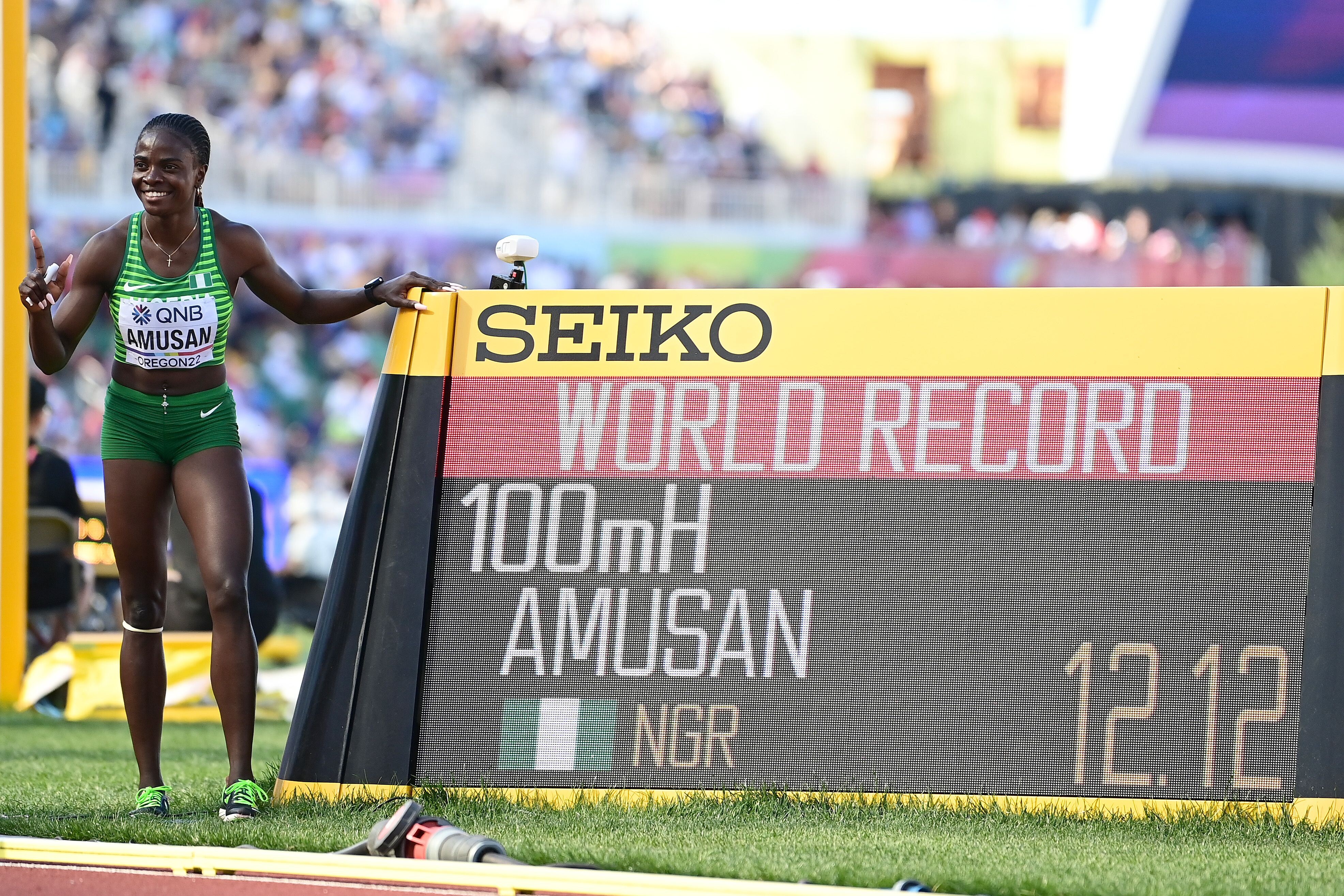 The switch to the sprint hurdles paid off in sensational fashion on Sunday (24) when the 25-year-old Amusan smashed the world record, clocking 12.12 in the semi-finals at the World Athletics Championships Oregon22. She shaved 0.08 off the previous mark set by Kendra Harrison of the US in 2016.