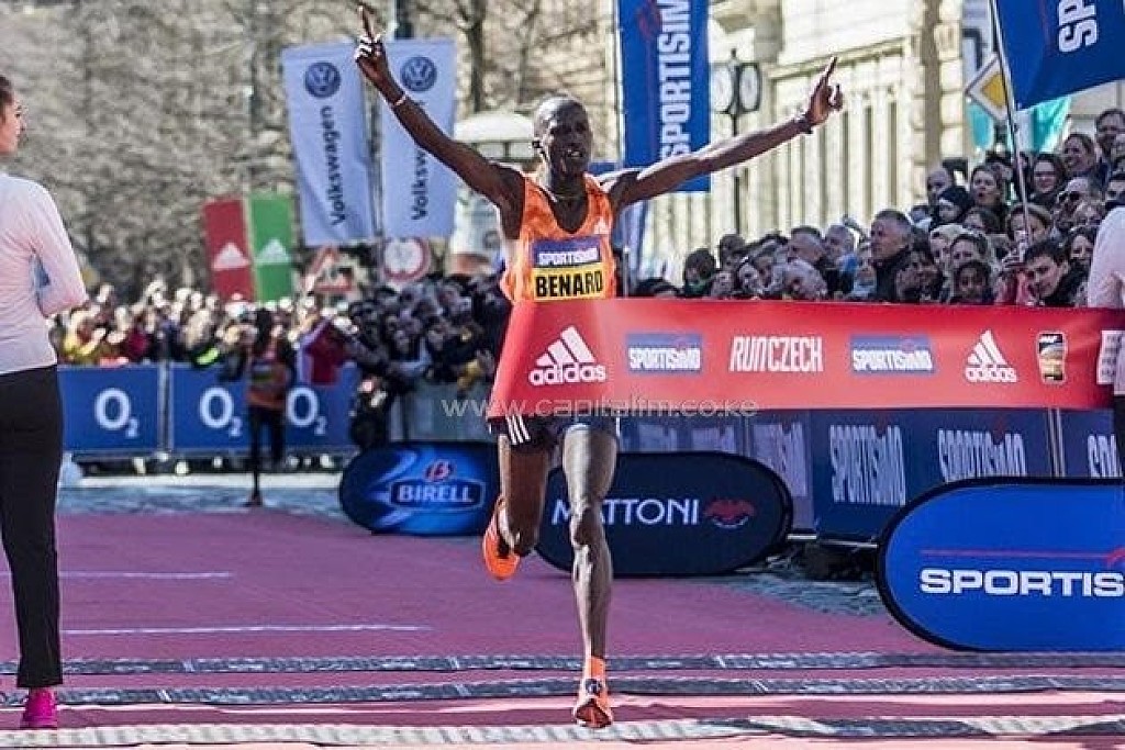 Prague Half Marathon today, Benard Kimeli broke from a three-man pack in the final kilometre to claim an emphatic victory in 59:47.