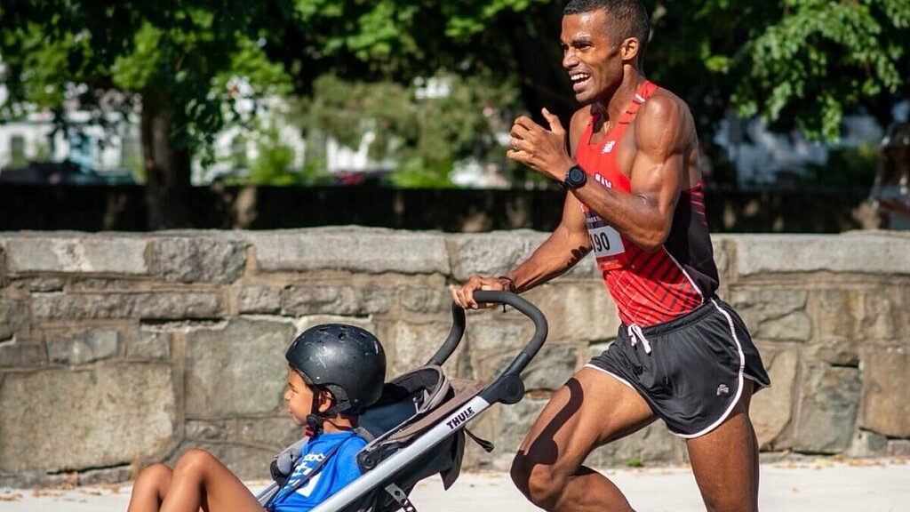 According to an interview with local news, Sança’s said the stroller weighed 25 pounds, so he ran a 4:32 mile while pushing 80 pounds.