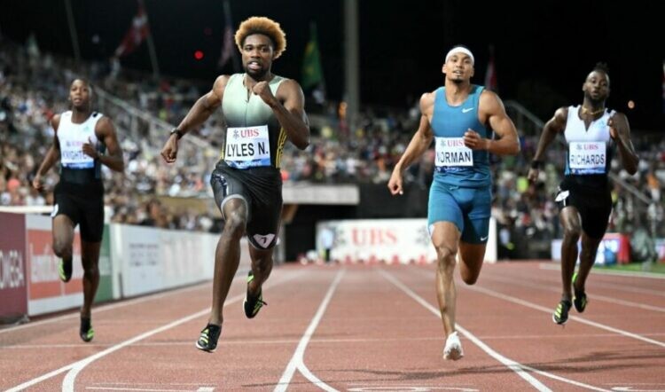 Chilly conditions in Lausanne were not conducive to fast sprint times but Noah Lyles ran a quick 19.56 (1.3) despite a poor start. Mike Norman, who had led into the home straight, was runner-up in 19.76 as Britain’s Charlie Dobson, on his Diamond League debut, ran 20.34 in eighth from the inside lane.