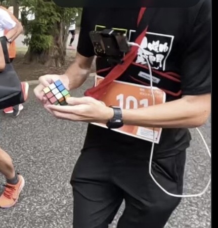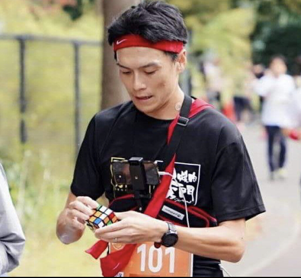 “I have been training for this record for 10 years,” says Suga. When he began running with Rubik’s cubes, he found he was able to solve one in 30 to 50 seconds. Since 2013, Suga has competed in several marathons each year.