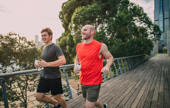 Studies show that upbeat tunes can distract you from physical exertion and even get you to push a little harder. Songs between 120 and 140 beats per minute have the biggest impact. But, remember to be smart about your headphones—only use them in safe, low-traffic areas and keep the volume at a level that allows you to hear what’s going on around you (and protects your eardrums).