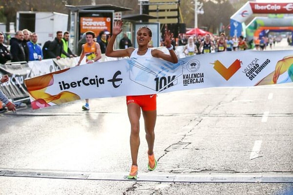 Ethiopia’s Yalemzerf Yehualaw clocked 29:19 at the Valencia 10K Ibercaja to come within five seconds of her own world record, while Kenya’s Weldon Kipkirui Langat won in 26:55 in a thrilling finish against compatriot Charles Langat at the World Athletics Label road race in the Spanish city on Sunday (15).