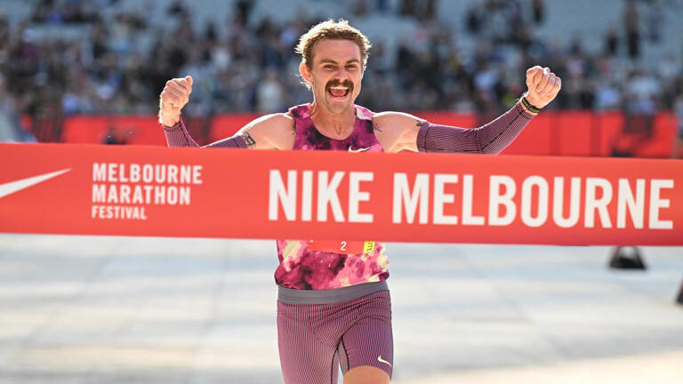 The Queenslander won the Melbourne Marathon on Sunday in two hours, 28 minutes and 13 seconds, beating local Sarah Klein by nearly three minutes. Kate Mason, also from Melbourne, completed the women's podium in 2:34:08.