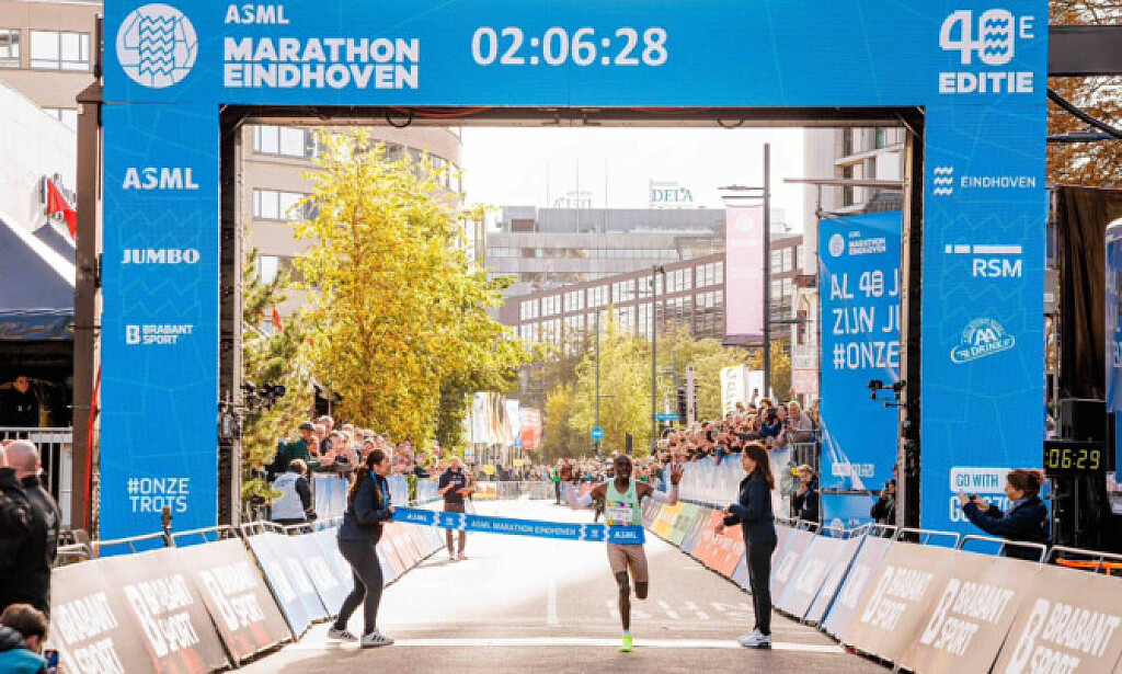 Enock Kinyamal came first in the ASML Marathon. The Kenian widened the gap between himself and his competitors and finished at 2.06.28, four minutes faster than his previous personal record.